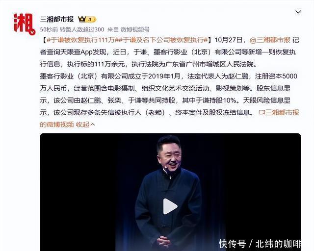 不少人开始问:是不是他名下的公司出问题,他作为股东被牵连?确实,于谦在那家被执行的公司只占 10%股份 ,可法院执行的是“恢复执行”,说明不是第一次。事儿可能早就有苗头,只是没人注意。 从舆论节奏来看,起初是震惊,随后是质疑,现在是失望。有粉丝说:“他和郭德纲一对一对这么多年,怎么连回应都不发一个?”也有人说:“不回应就是态度。”更有甚者直接把他列入“翻车艺人”名单,和某些爆雷明星并排。
